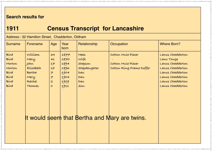 By the 1911 census, Mary has become Mrs Bird and William has become Head of the house. There were also four young children all with the surname Bird.