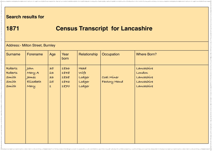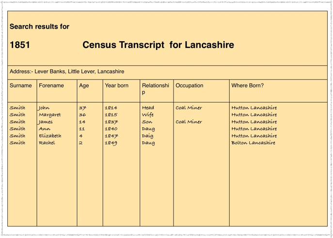 Elizabeth was to be found but as Elizabeth Smith. The only clues I had were the fact that James Smith was born in Bolton and always described himself as a Coal Miner and Burnley came up on a census as Hannah’s place of birth. So I looked in Burnley for James Smith.