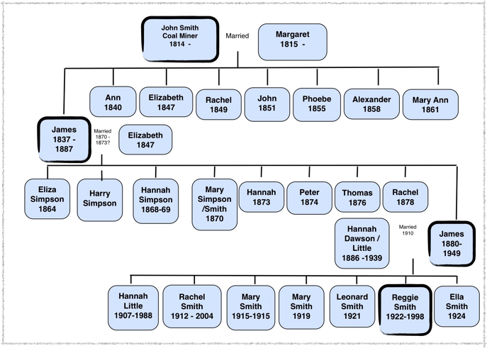 Having discovered James’ snr’s parents, I can now construct a Smith family tree.
