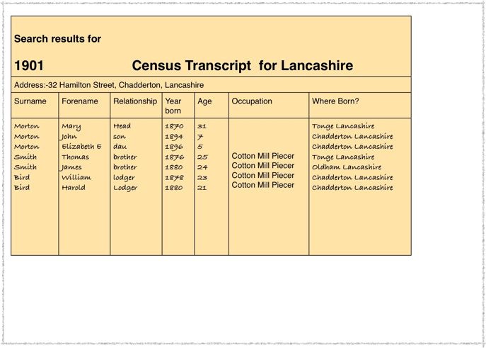 Mary has gone from the 1891 census return now as has Elizabeth. Mary and her husband John Morton were living in Princess Street, Great Harwood in the 1891 Census. I found a death registered in 1887 in Burnley for an Elizabeth Smith. I don’t know if that is this Elizabeth.